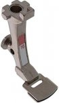 The vertical spring on the presser foot presses the sole to the fabric, preventing the material from pulling up with the needle (flagging). The result is a neat, consistent stitch pattern. What’s more, this oval foot with its slight upward tilt facilitates the stitching movement, even over bulky materials.
